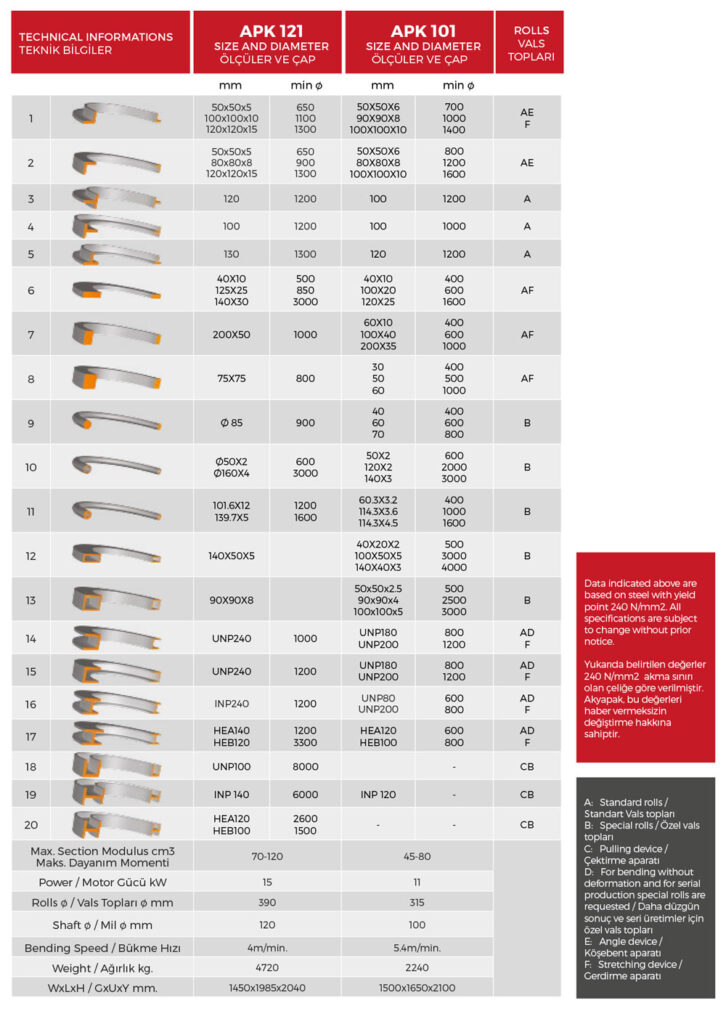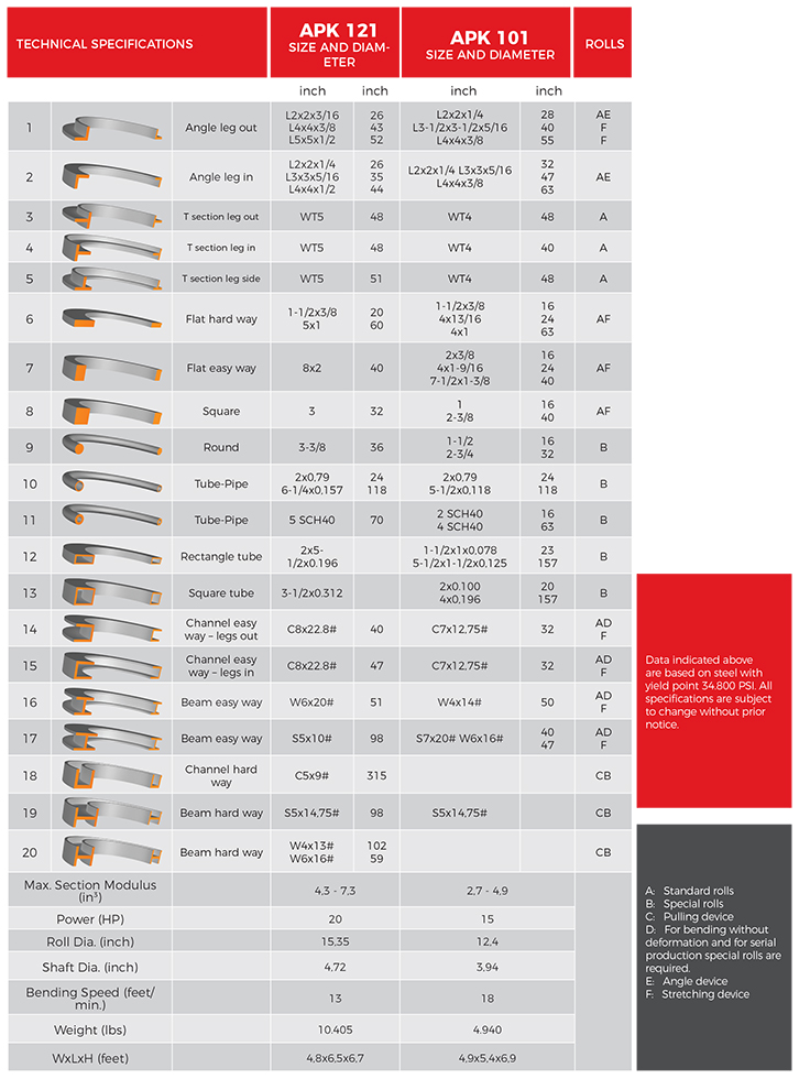 • Special mechanic guide rolls for bending angles (for APK 101)