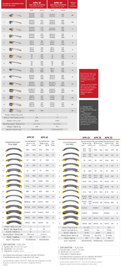 The AKYAPAK® APK Small Series Angle Roll machines are constructed using St-52 welds, making them reliable and strong. With an enlarged roll diameter, minimum flexion is ensured, which prevents any unnecessary deformations.